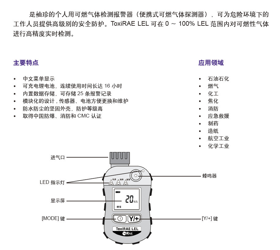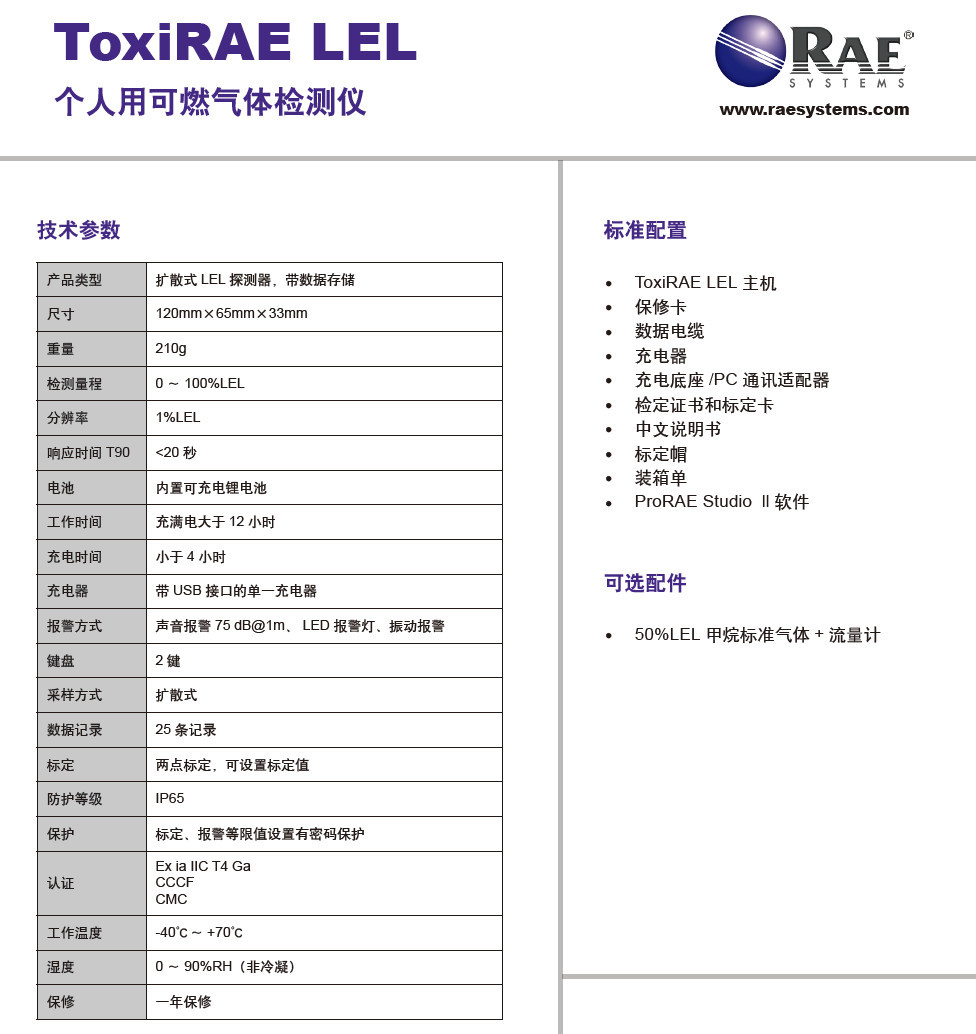 ToxiRAE PGM-1880 LEL是袖珍的个人用可燃气体检测报警器(便携式可燃气体探测器),可为危险环境下的工作人员提供高级别的安全防护。ToxiRAE LEL可在0~100% LEL范围内对可燃性气体进行高精度实时检测。