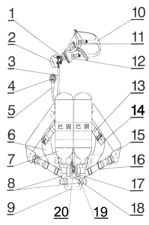 • 呼吸轻松,供气量可达到450升/分钟以上,保证面罩内正压